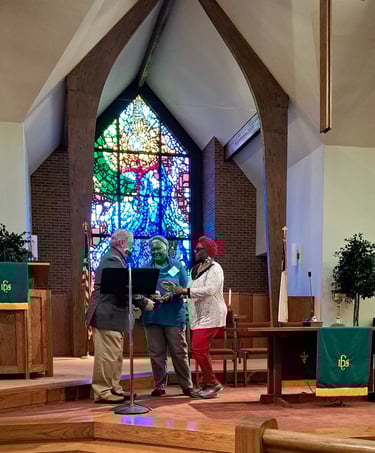 Pastor Dan White presents the curators of the Pea Ridge Cemetery with a check from FCC at the DOC Regional Assembly in Baton Rough, LA, in November.
